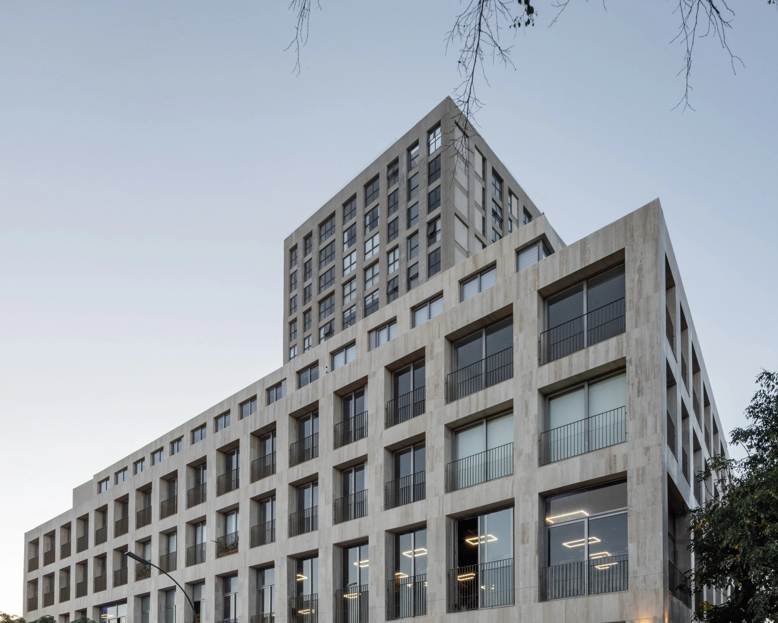 Un proyecto vertical de uso mixto que dialoga con su contexto inmediato a través de una composición geométrica cuidadosamente estudiada. Su diseño responde a la dinámica urbana de Avenida México y Plaza de la República, incorporando referencias formales como los tótems y el obelisco en su escala y alineación.